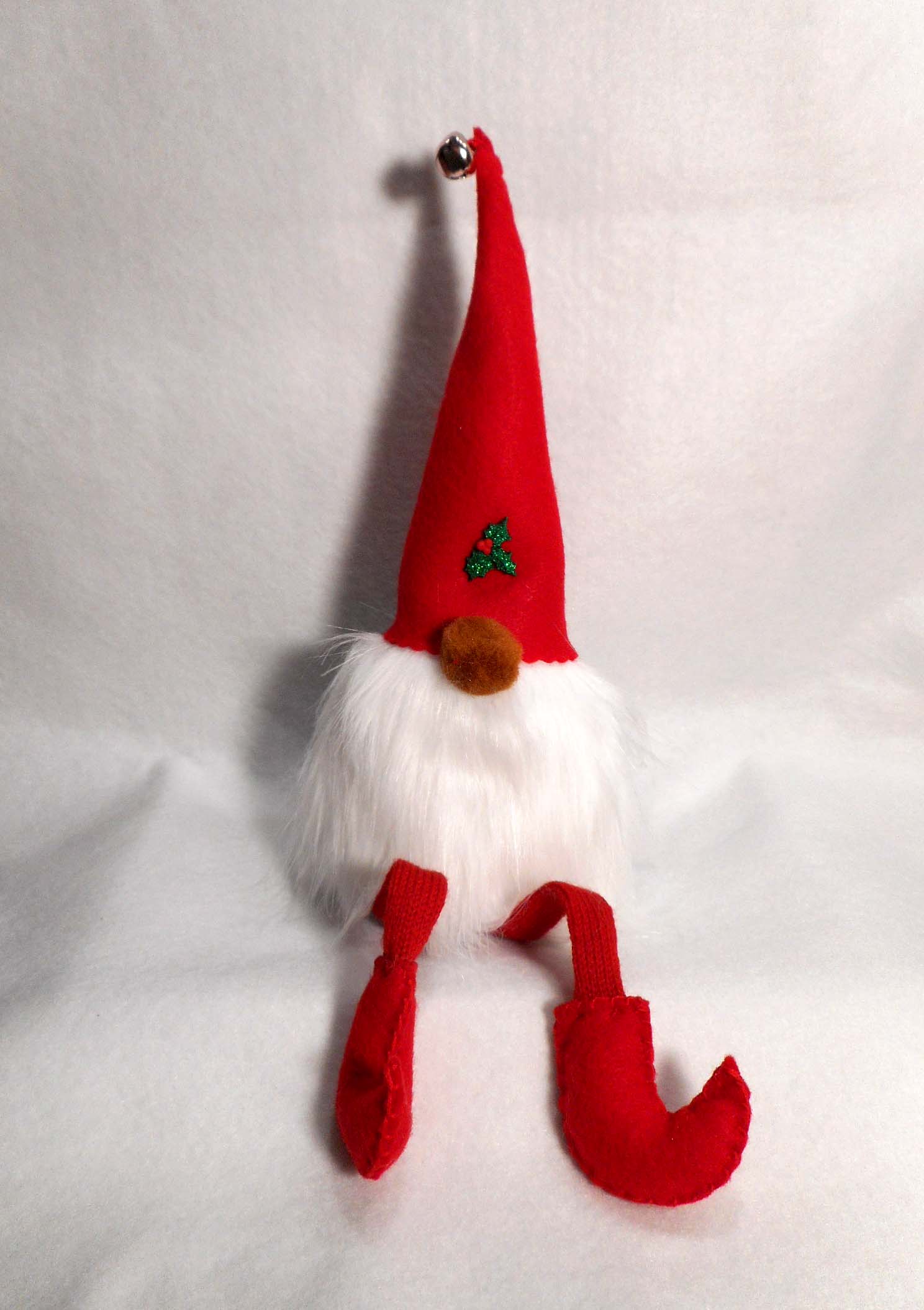 Karácsonyi manó, közepes méret, filc anyagból, antiallergén töltéssel, díszvarrással.